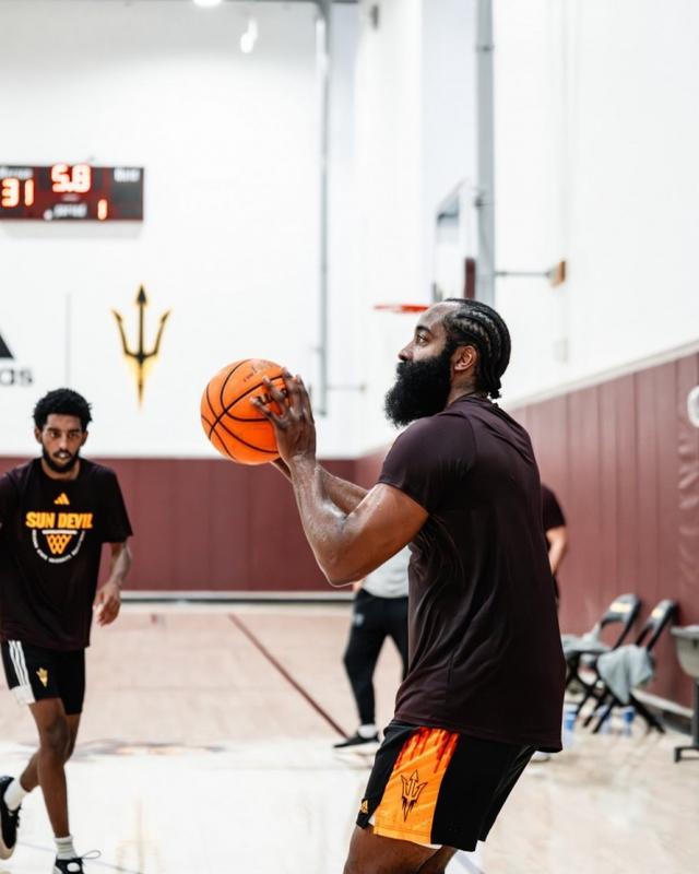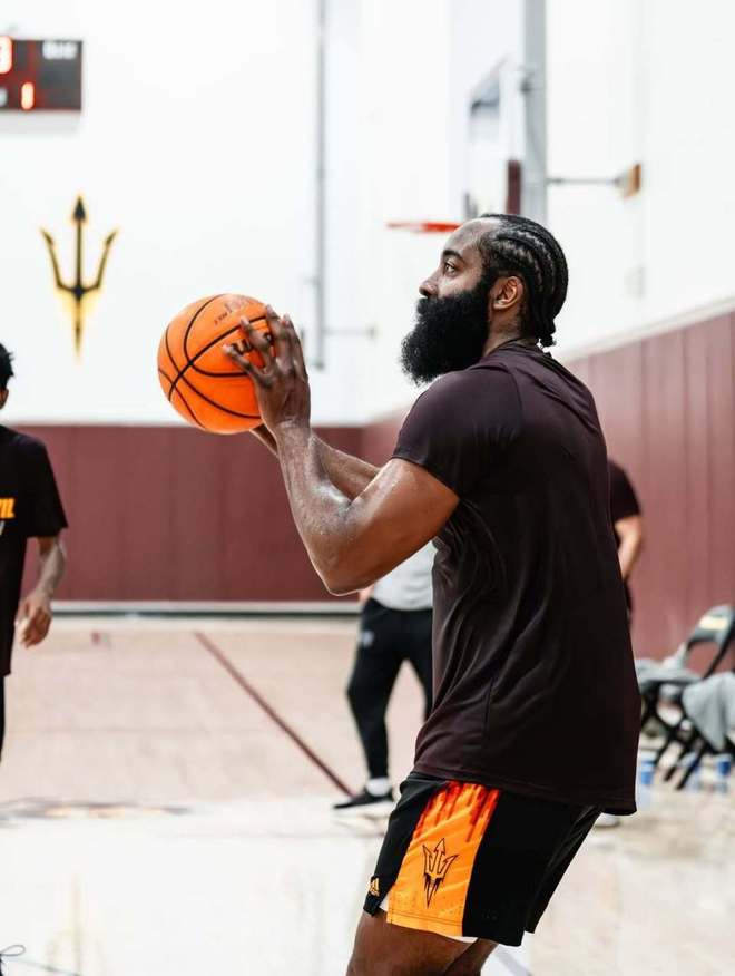 登哥瘦了?亚利桑那州大男篮官媒晒哈登回母校训练的照片