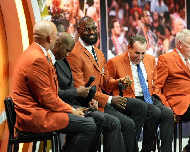 气色不错!湖人官方晒现场照:詹姆斯作为救赎之队成员入选名人堂