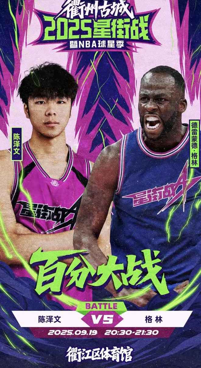 雷速体育9月6日讯 国内街球赛事主办方“星街战”今日更新社媒,正式官宣了勇士球星追梦格林的百分大战,他的对手是国内街球手陈泽文,比赛将于9月19日晚上20:30至21:30举行。追梦