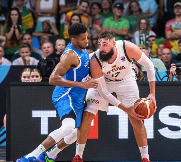 北京时间9月10日,男篮欧洲杯1/4决赛,希腊对阵立陶宛。立陶宛上来率先占据主动,字母哥随后带队追上比分,之后两队陷入拉锯战,分差始终没有拉开,半场希腊领先6分;下半场立陶宛进攻状