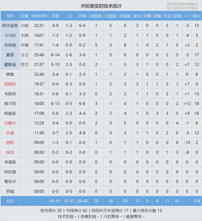 杨瀚森在第二节两次出手没能命中,上半场打完,开拓者58-64落后国王。杨瀚森出战8分14秒,2投0中,罚球2中2,拿到2分2板1盖帽3犯规,正负值+4。第三节还剩5分钟,杨瀚森连进两记三分+转身上篮,连得10分点燃全场!