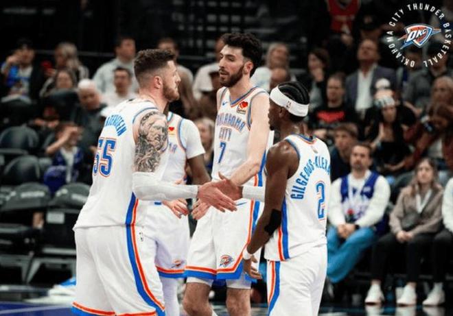 防守作为雷霆的主旋律,他们人均防守悍将,都很擅长拼抢;内线战力也不虚其他队伍,切特和哈尔滕施泰因的双塔,篮下统治力十足。防守顶级的同时,雷霆还特别擅长打快攻反击,很轻易就能抓住对手失误的机会,转化成自己的得分。此外,基本功扎实、罚球准,也为雷霆一路连胜奠定了基础,他们的罚球命中率比联盟垫底的雄鹿,高了整整10个百分点以上。